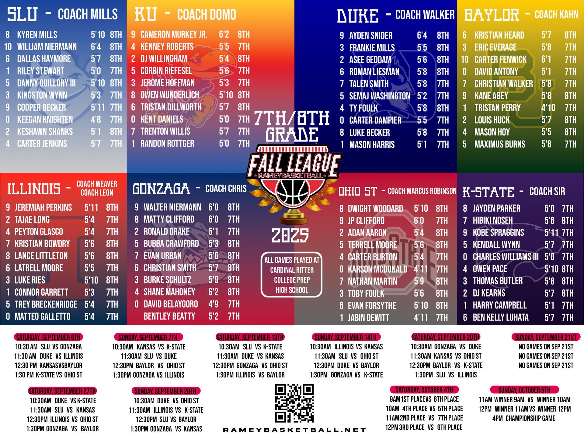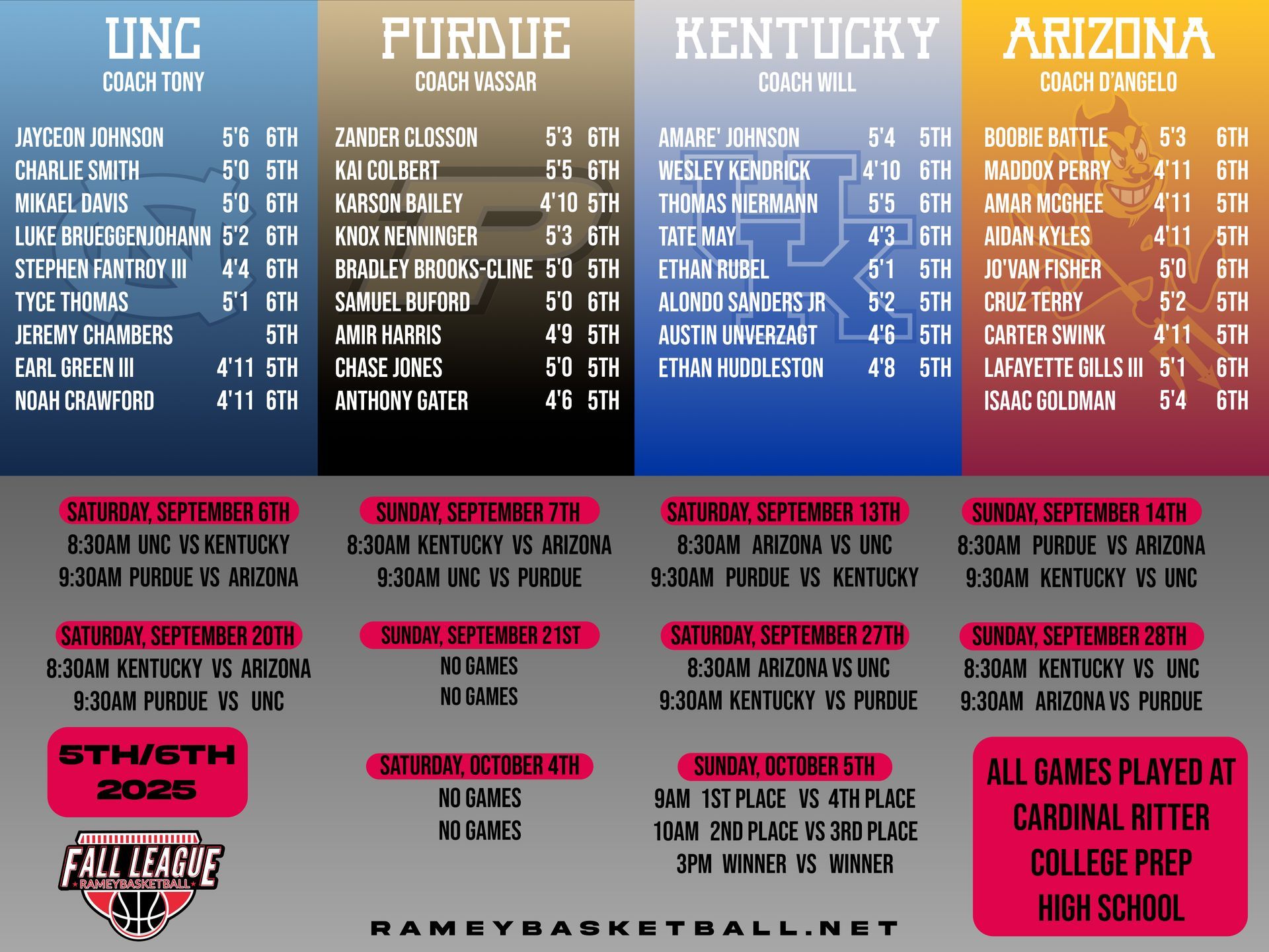 The Ramey Basketball Fall League is a fall staple for youth basketball held at Cardinal Ritter College Prep High School. Every year, players and fans from around the St. Louis area gather at the cozy gymnasium located on the well-groomed campus of the small private high school. For players, the league is a chance to play with and against friends and in-season rivals alike. The League features boys basketball players from grades 5-12. Players sign up for the league as individuals and are placed on teams according to their position, grade and skill level. A team consists of a roster with no more than 10 players in one of three grade levels: 5th/6th, 7th/8th and high school. Each team is coached by a dedicated cadre of volunteer youth coaches